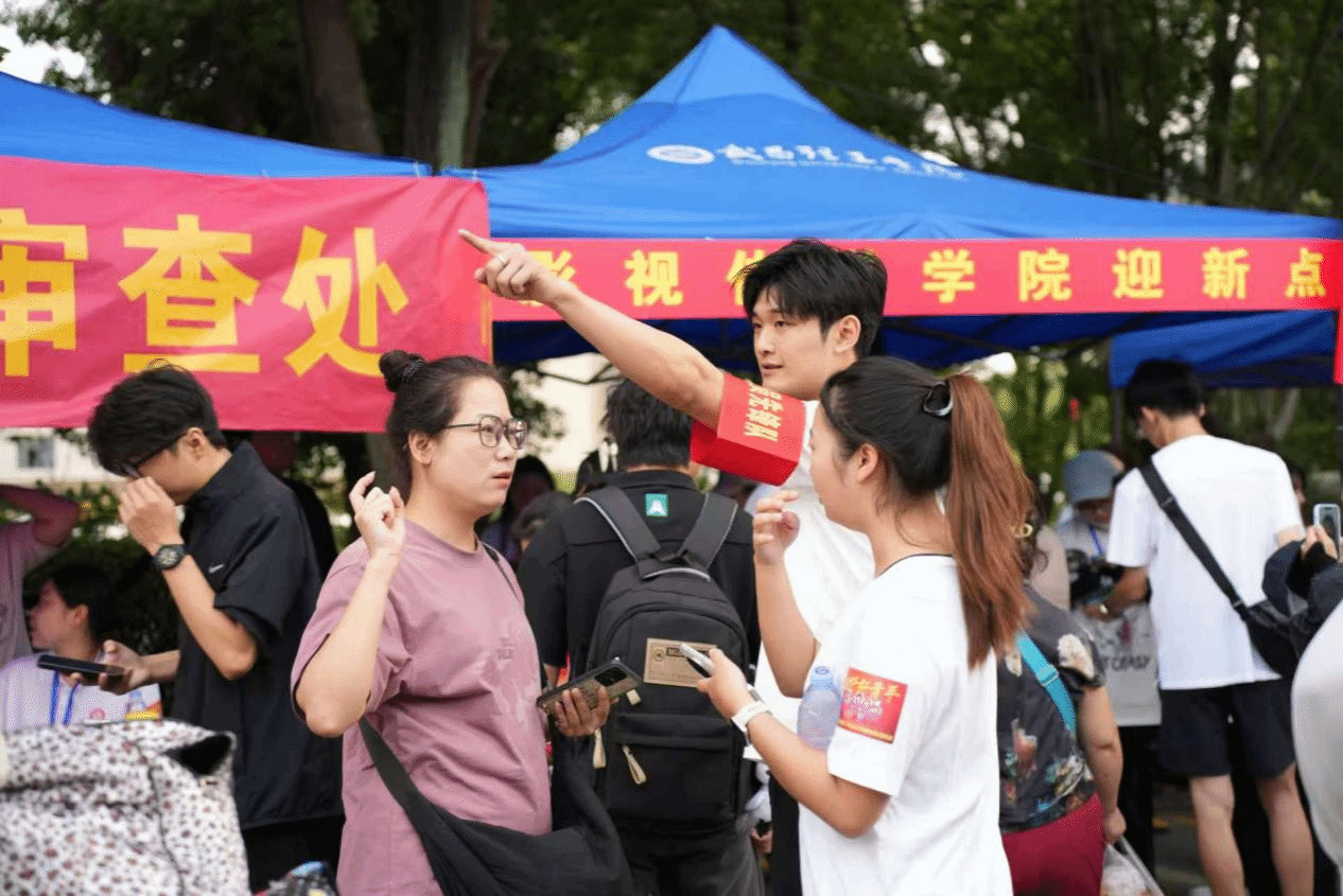 团委网9月6日消息(李博然 报道)2025年9月影视传媒学院迎来了来自全国各地的2025级新同学。学院始终坚持党建引领,充分发挥基层党组织战斗堡垒作用和党员先锋模范作用,组织全体师生党员主动投身迎新服务,保障迎新工作有序、高效开展。