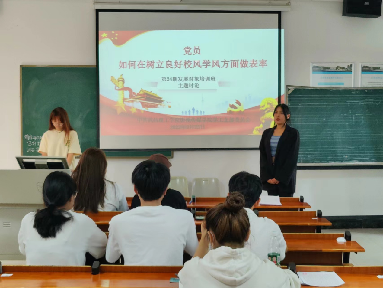 团委网9月23日消息(付金林 报道)为了发挥党员的先锋模范作用,提高发展对象的政治素养。9月23日中午12时,影视传媒学院学工支部在影视传媒学院401教室顺利开展了第24期发展对象培训班主题讨论活动。此次会议由影视传媒学院党建会主任崔静雯主持,参与此次会议的有影视传媒学院第24期发展对象培训班学员。