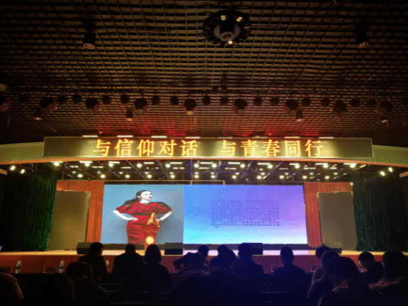 出席本次主题晚会的嘉宾有学工处院办主任曾洁老师与影视传媒学院素质导师姜仁老师、孙鹏老师和王婷婷老师。在主持人一系列的介绍之后“与信仰对话与青春同行”主题晚会正式开始。