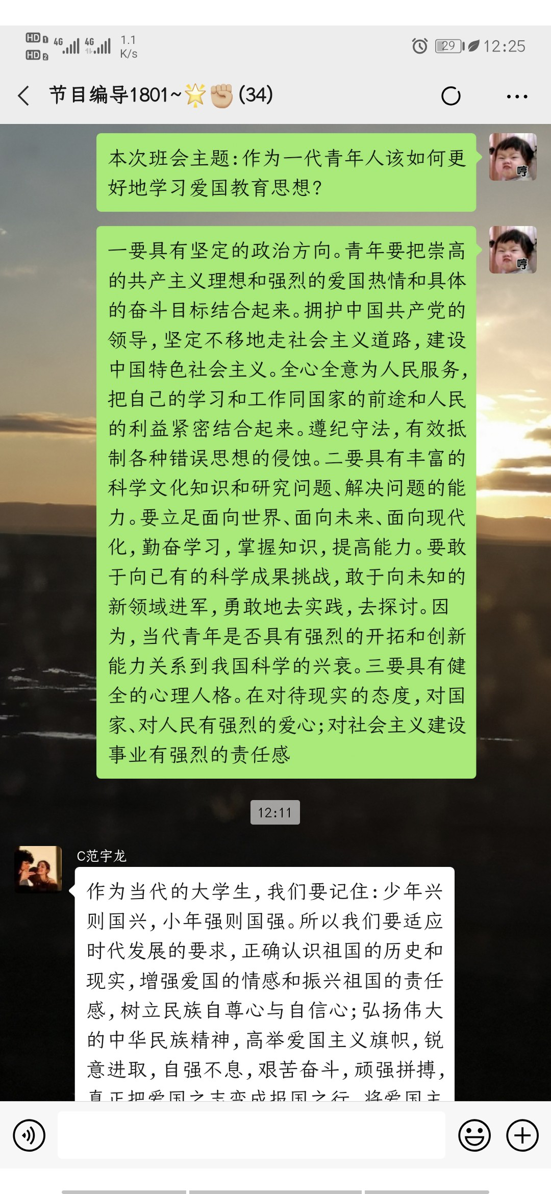为推动《新时代爱国主义纲要》学习贯彻,落实深化爱国主义精神,让团员青年们能在沉浸式的参观学习中领悟,在领悟中感动,在感动中不断激发爱国情、强国志、报国行,为了更加坚定同学们对中国特色社会主义的道路自信、理论自信、制度自信、文化自信,提升学校共青团实践育人的吸引力、凝聚力和感染力。影视传媒传媒学院17级、18级、19级共48个团支部、1186名学生通过在QQ微信班级群里交流、开展腾讯会议等方式来深入的探讨本次主题活动。