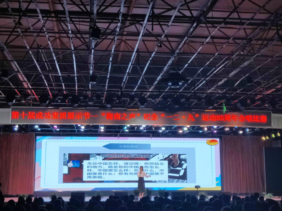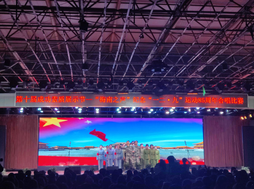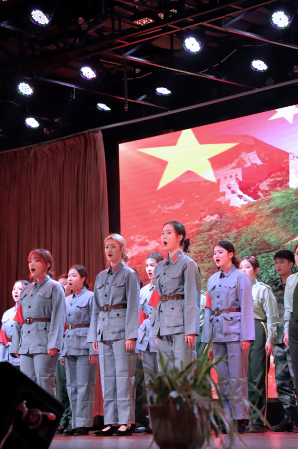 “拂去岁月厚厚的封尘,敞开心的世界记忆的闸门,一副副一帧帧,不能忘却的画卷,引领着我默默地前行。”由影视传媒学院2019级音乐学专业学子带来的合唱表演《追寻》,每一句歌词都声入人心,让人不禁联想到“一二.九”时,北平中学生数千人举行了抗日救国示威游行,反对华北自治,反抗日本帝国主义,要求保全中国领土的完整,掀起全国抗日救国新高潮。他们激情澎湃,齐声高歌,共同去追寻红歌中的民族记忆,传承红色精神;用嘹亮的歌声,最真挚的感情,去唱响那一段段熟悉的旋律,用最美好的语言去赞美,用最深沉的感情去歌颂党和母亲。