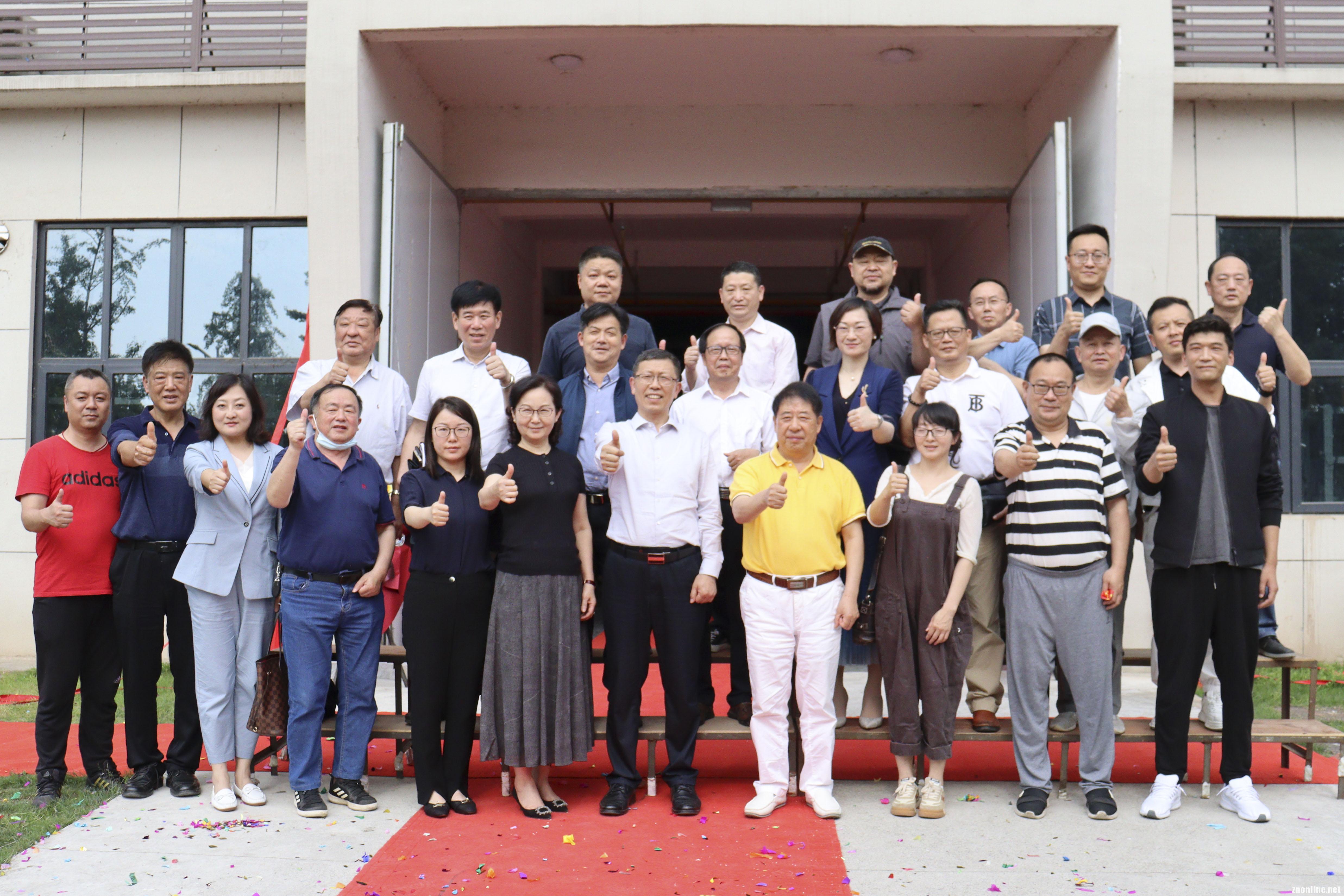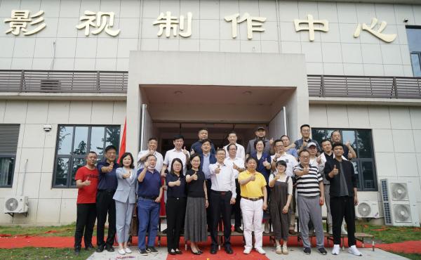 活动最后,迎来了最重要的揭牌仪式。在主持人的引导下,校长赵作斌教授、校党委书记汪继平与各位领导及嘉宾一起来到影视制作中心大门前手握揭牌拉绳,随着热烈的掌声和欢呼声,“影视制作中心”的牌匾在礼炮声中揭幕。仪式结束后,校长赵作斌教授与诸位领导和嘉宾在影视制作中心牌匾下拍照留念,至此,揭牌仪式圆满落幕。