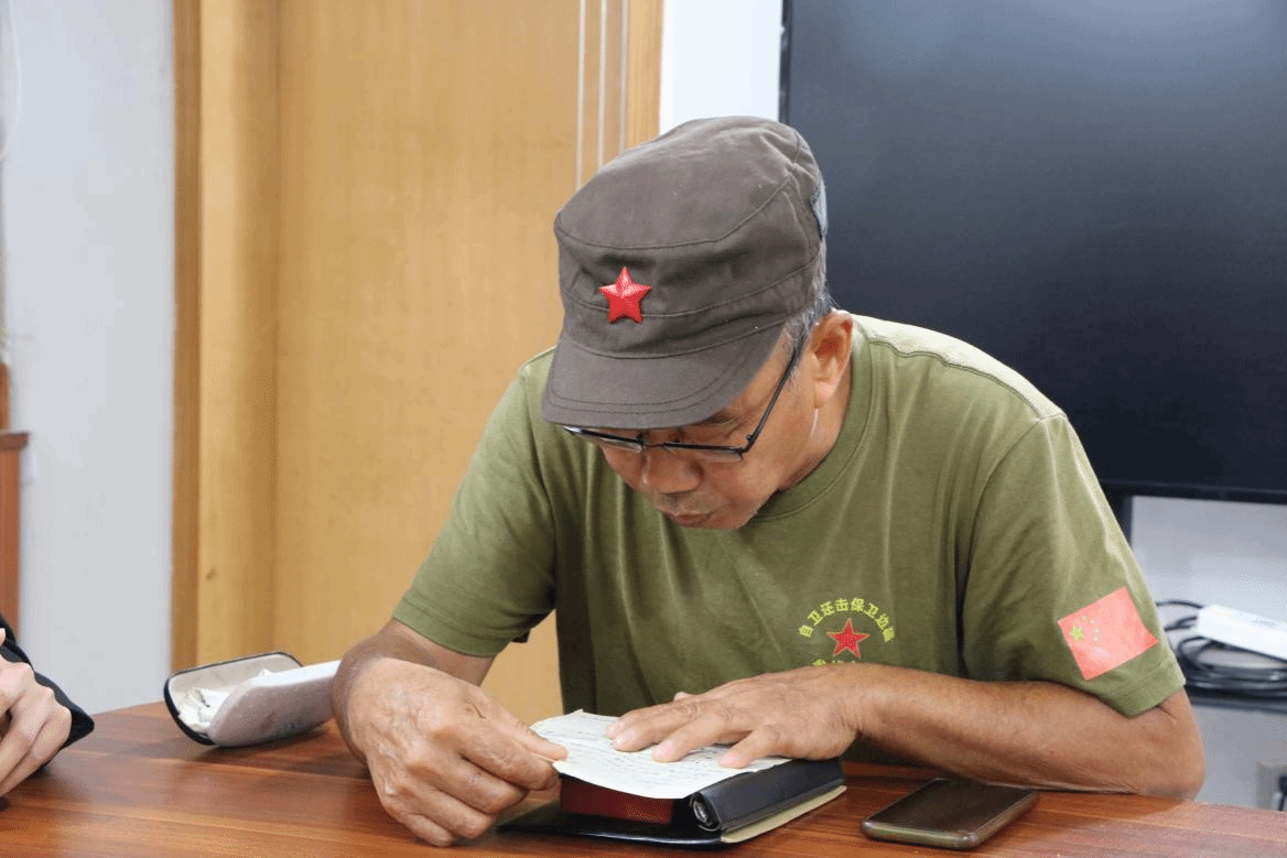 活动过程中,志愿者们来到武南村社区,为老兵送上慰问品和祝福,与老兵共话国家发展、个人成长。王朝平老人不仅向志愿者们激昂的讲述了自己参加的革命战争故事,还向志愿者们展示了自己革命战争年代时的笔记本,将志愿者们拉回那段历史现场。“发扬党的优良传统,好好学习,国家发展和军队建设依赖你们这一代。”朴实的语言,表达了对祖国的祝福和对新一代的深深寄托。“经过与王爷爷的亲切交谈,我深感敬佩与感动。老兵是历史的见证,也是我们学习的榜样。作为青年学子,我们要继续传承和发扬党的优良传统,向他们致以崇高的敬意。愿他们身体健康,生活幸福美满。”参与此次活动的纪博闻同学有感而发。