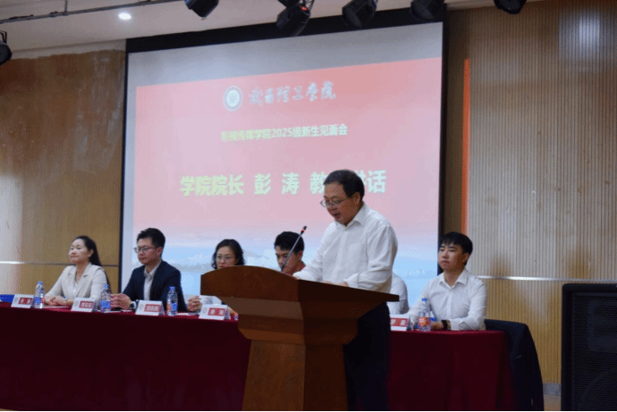 9月24日消息(通讯员 邓依纯 报道 王子月 摄影)为迎接2025级新生的到来,帮助其快速融入大学生活、树立专业信心、明确学业规划,武昌理工学院影视传媒学院于9月22日下午在商学院九楼报告厅连续举办了两场重要活动——2025级新生见面会与成功校友分享会。两场活动衔接紧密、内容充实,为新生上了生动而深刻的“开学第一课”。影视传媒学院院长彭涛教授、党总支书记李曼、教学院长王磊、科研院长常双双、团委书记罗豪、院办主任王玥、实验室主任王超、各系主任及校友代表出席大会,与全体新生共同见证这一重要时刻。