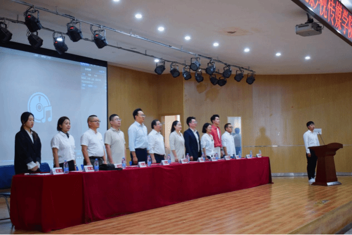 新生见面会在庄严的国歌声中拉开帷幕。老生代表播音2201班周凯结合自身“实践与成长”的经历,鼓励新生积极利用校园平台锻炼能力,不断提高自己的综合素质。新生代表表演2503班张博然表达了成为一名“影视传媒人”的决心。彭涛院长则在讲话中详细介绍了学院的发展历程、学科优势与人才培养成果,勉励新生立大志、明大德、成大才、担大任,将个人成长融入国家发展大局。