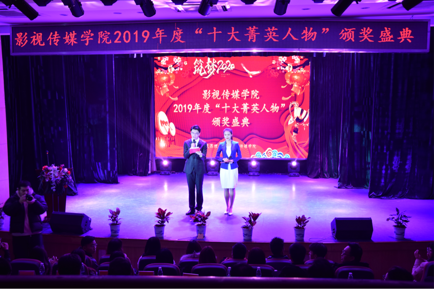中南在线12月30日消息(大通社记者 倪屹蓉 见习记者 植绮婷 报道 郑玲珑 陈扬杰 摄影)“推进榜样力量,弘扬时代精神。”12月30日下午4时整,为表彰一批作风优良,成绩优异,为学院作出突出贡献的优秀教师和勤勉耕耘、乐于奉献的优秀学子,树立和宣传一批具有时代特色和进取精神的杰出青年代表,特在多功能小剧场隆重举行影视传媒学院2019年度“十大菁英人物”颁奖盛典。