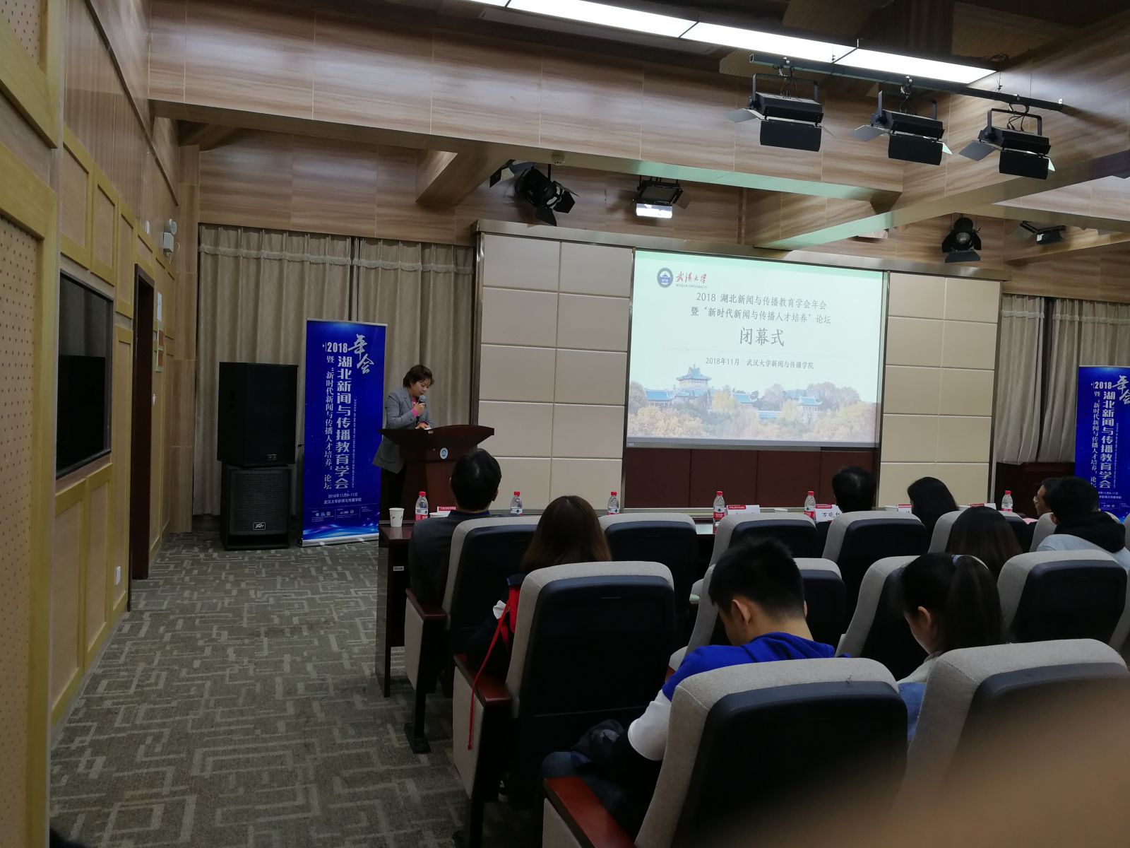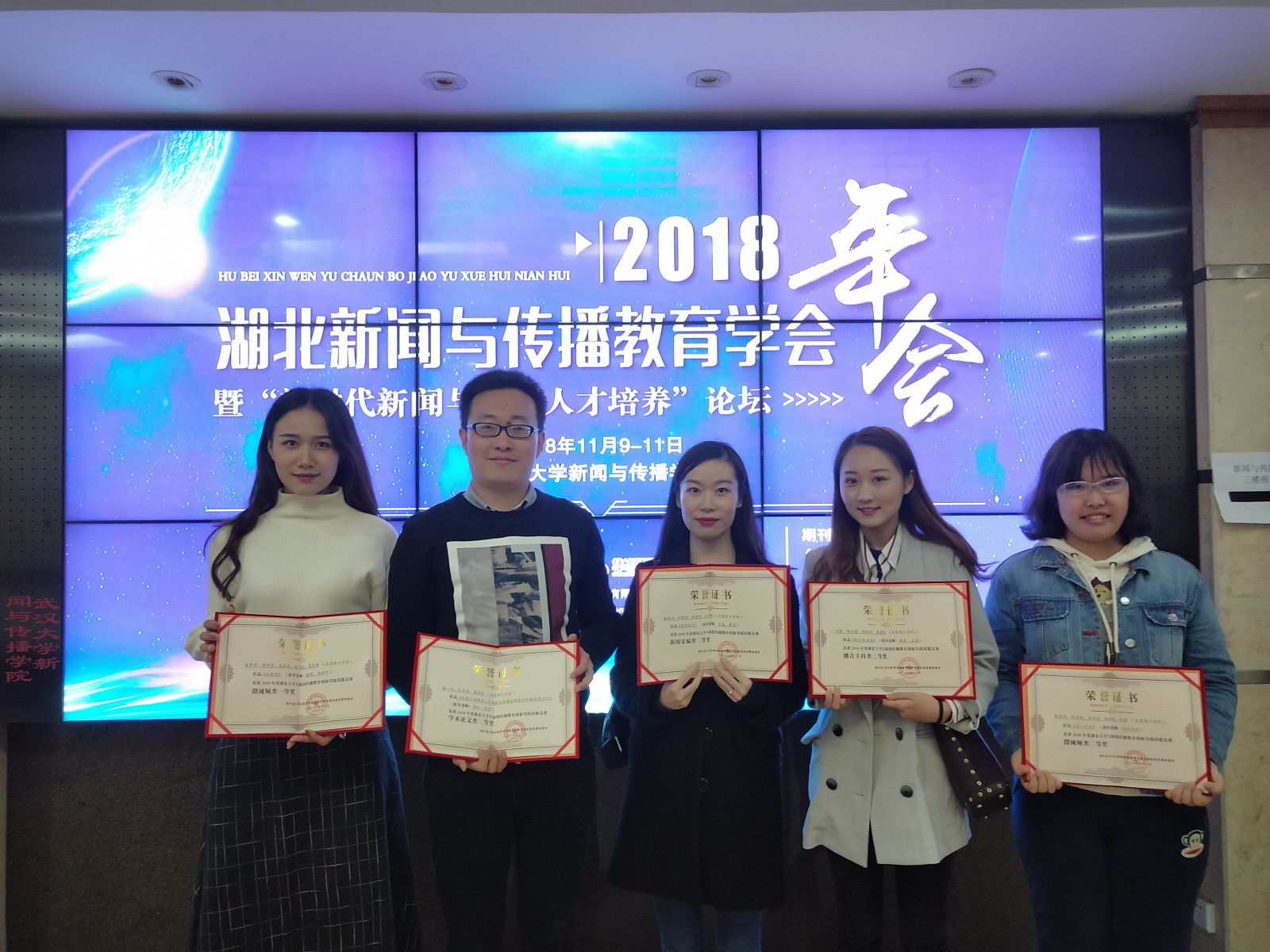团委网11月10日消息(通讯员陶一玮 报道)11月10日,2018湖北新闻与传播教育学年会暨2018实践技能大赛颁奖典礼在武汉大学新闻与传播学院召开。经过激烈的角逐,我校影视传媒学院的訾梦茹、赵成龙、赵中瑞慈东峰等的作品《木屋情》荣获2018年度湖北大学生新闻传播教育创新实践技能大赛微视频类一等奖,余岸霖、朱昭斌等的作品《玉一方米》获得微视频类二等奖,戴静怡、刘梦娇、韩建明、孙宇鹏的作品《教育视点》获得新闻采编类二等奖,王雪、郁尚慧、顾桐羽、戴静怡的作品《剧句有话说》获得播音主持类二等奖,谢一凡、王苏阳、梁浩凯的作品《机器人讲解与人声讲解互通模式的知识传播效果分析》获得学术论文类二等奖。黄岚老师等七位老师为他们的作品进行了悉心的指导。