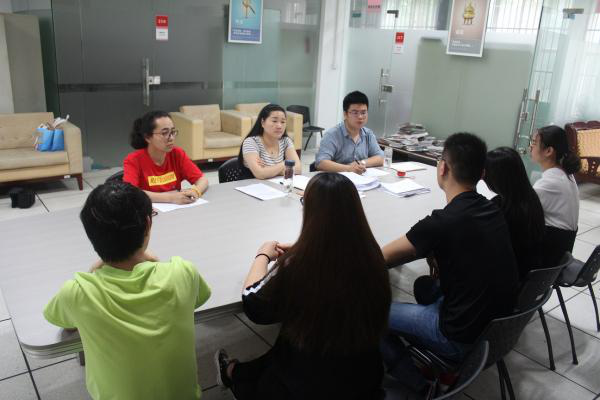 团委网6月6日消息(通讯员 李松泽 单鹏鹏 报道)6月5号上午,武昌理工学院2018年西部计划招募活动面试环节在通识学院中厅会议室如期开展。校团委书记李曼,指导老师曹昆,指导老师古丽米热作为面试官出席。